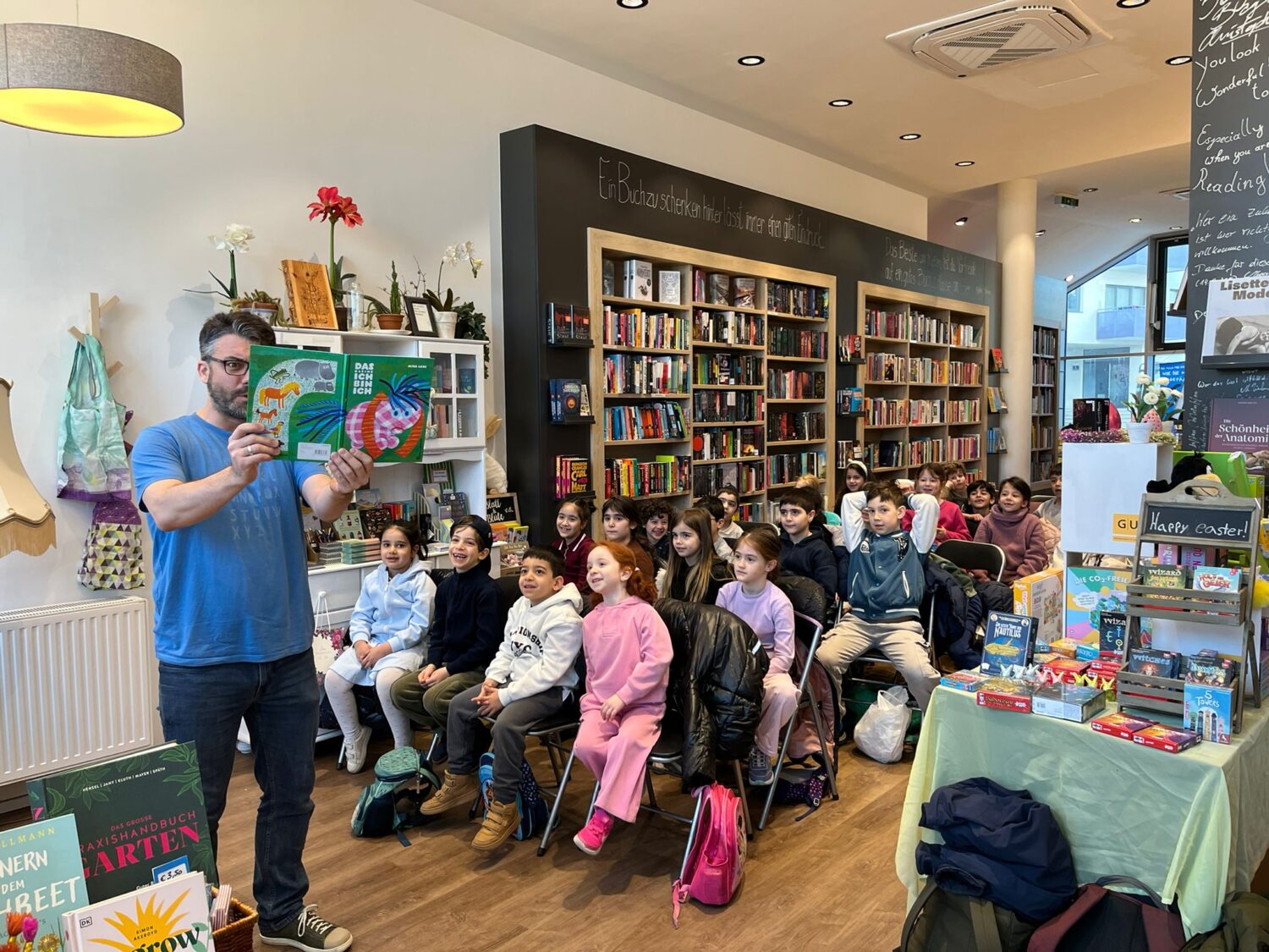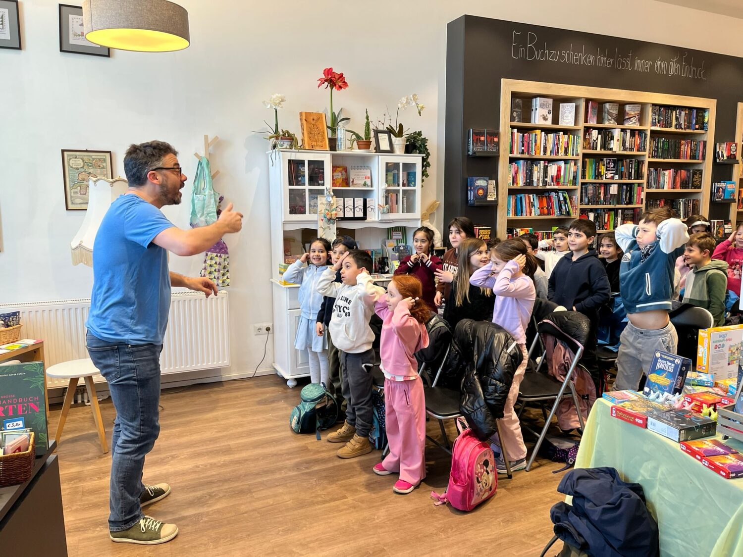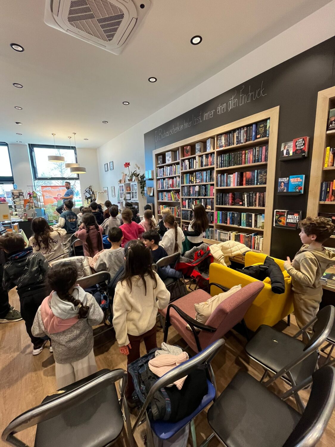 Die 1. Klassen der Volksschule besuchten die Buchhandlung „Seeseiten“ in der Seestadt, um zu lernen, wie Kinderbücher entstehen und welche Arten von Büchern es gibt. Ein Höhepunkt war die anschließende Lesung, die von den Kindern mit Spannung verfolgt wurde.