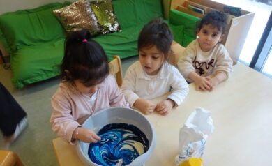 In der Winterzeit bieten wir den Kindern vielfältige Angebote rund um das Thema Schnee an. Beim Angreifen und Erkunden von Schnee machen die Kinder intensive Sinneserfahrungen: Sie spür