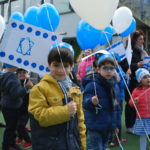 Auch dieses Jahr wurden im Kindergarten gemeinsam Lieder gesungen und Luftballons in Blau und Weiß als Geburtstagsgruß nach Israel geschickt. Mit selbst gebastelten Fahnen besuchte eine